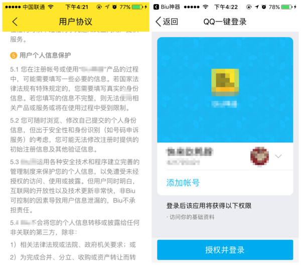 当您确认登录后,也就确定了您同意将自己个人信息,透露给第三方软件。如果您登陆的第三方软件是一些非法的垃圾软件时,您的个人信息就遭到泄露。严重时,会对您的个人信息进行买卖公布,进而对您的个人生活造成影响。当你变更个人信息,再次登录垃圾软件时,该垃圾软件会再次获取您更新后信息。