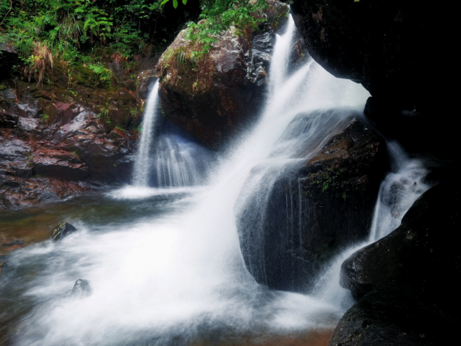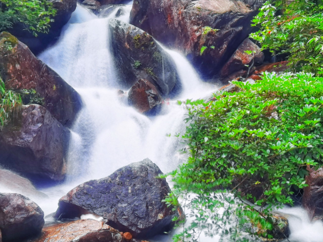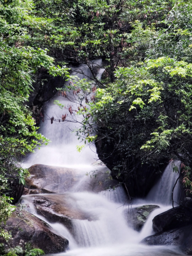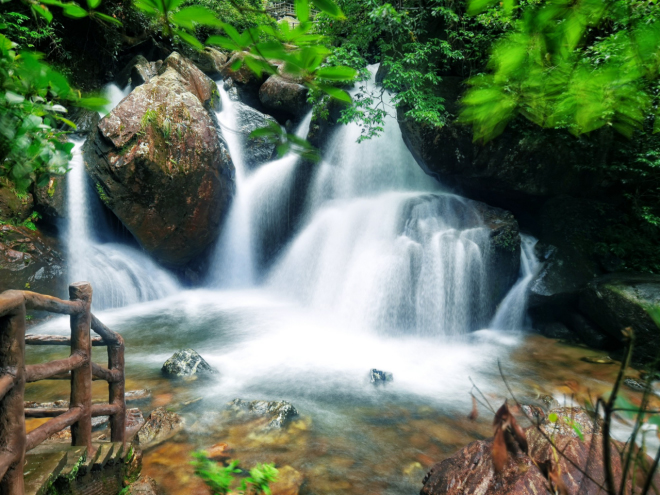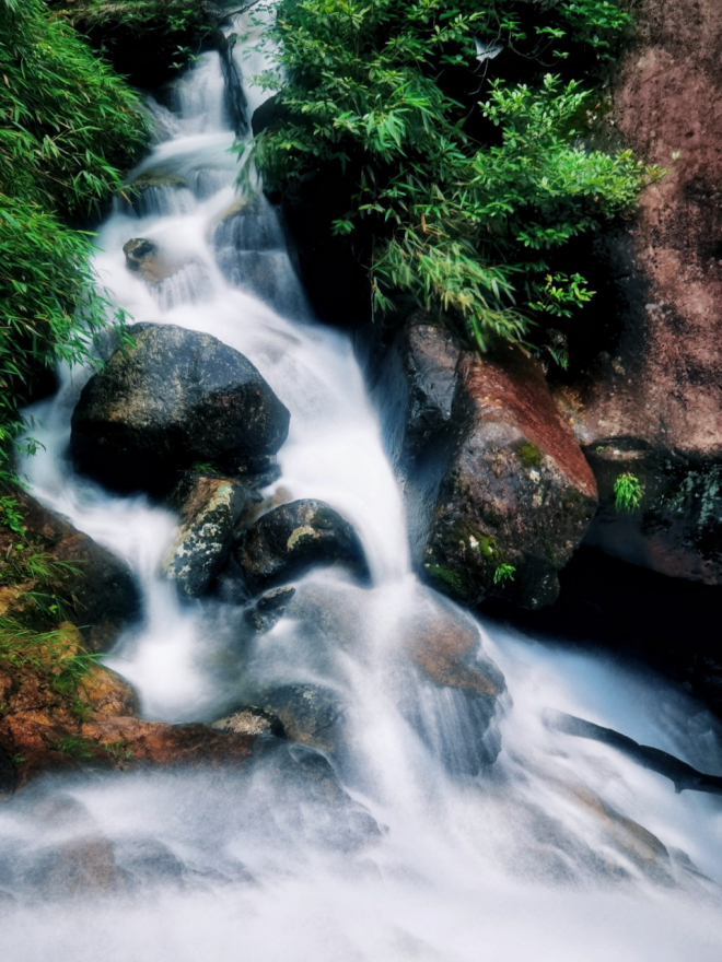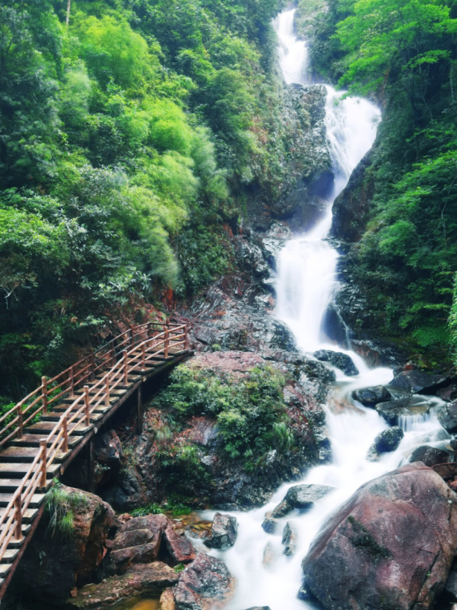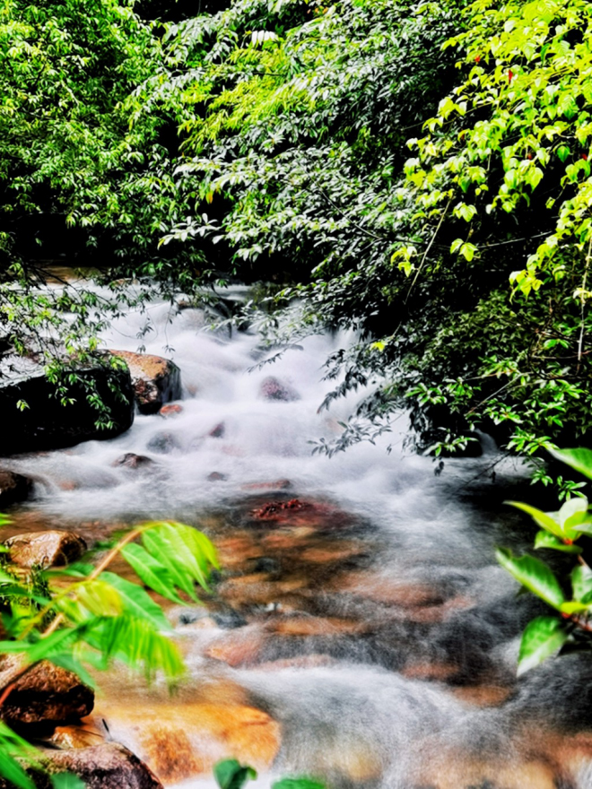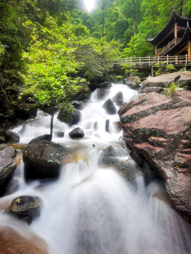 南方6月初,龙舟水来势汹汹,雨后的清绿满眼,峡谷中的溪流顺势而下,水声潺潺,银花飞溅,美轮美奂!