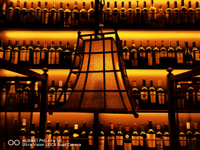 无论管线如何变换,无论白天黑夜,无论室内室外,华为P40 Pro总能调整到最佳状态,通过AI算法让你拍出的每一张照片都满足你所想,上面两张照片就是两个大相径庭的典型场景,可以看出户外太阳直射在高楼玻璃外墙的情况下,华为P40 Pro也能够通过算法来均衡,使得照片里阳光反射的区域不会出现过亮过曝的情况,整体效果非常的适眼。在灯光较暗的地方拍照,也不用担心过暗而导致细节不清楚,这张藏酒架的照片我非常喜欢,色调我爱了。