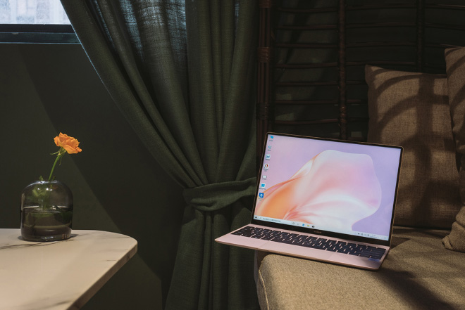 以往笔记本的配色大多是黑白灰,作为女性就更倾向于购买白色,这次华为mateBook X打造的樱语粉很有特色,这个配色并不是普通的浅粉,而是在浅粉的基础上增加了闪粉,在光线的影响下会产生奇特的视觉质感。