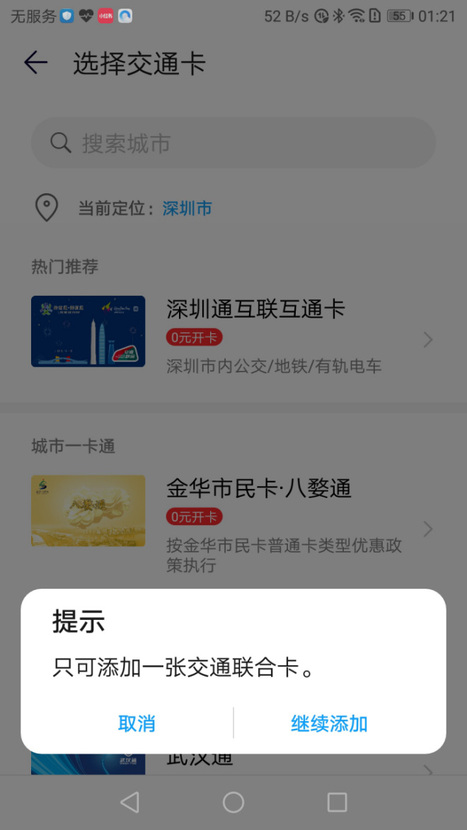 城市一卡通:杭州,南昌,宁波,金华。