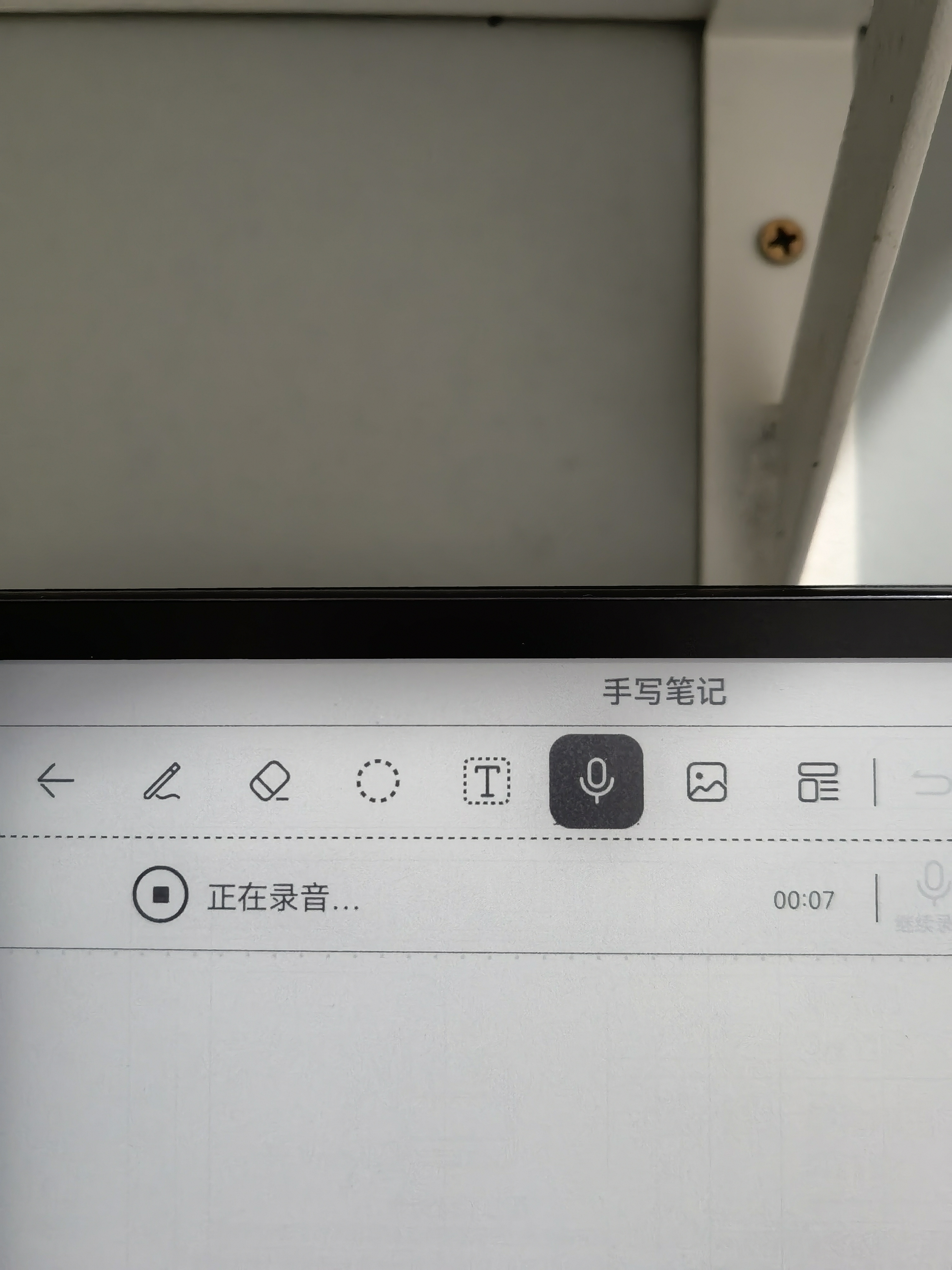 在做笔记的时候,打开会议录音,就可以对实时录制会议中的讲话。而且墨水屏做了一个巧妙的功能,录制好声音以后,可以用手写笔在录音的进度条上打标签,画板上会生成对应的标签,这时可以在标签旁写下关键词,方便找到标签。点击标签后,会自动定位到进度条的关键点,下次翻找会议信息就会很方便。