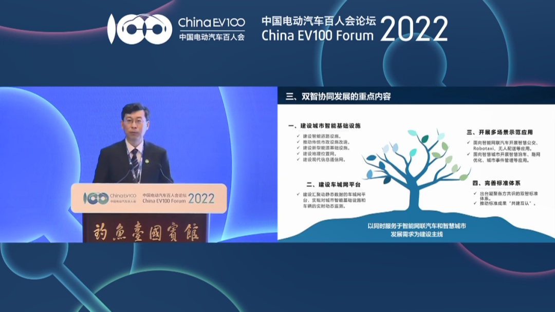 「双智协同发展的重点内容包括四个方面:一、建设城市智能基础设施;二、建设车城网平台;三、开展多场景示范应用;四、完善标准体系。」