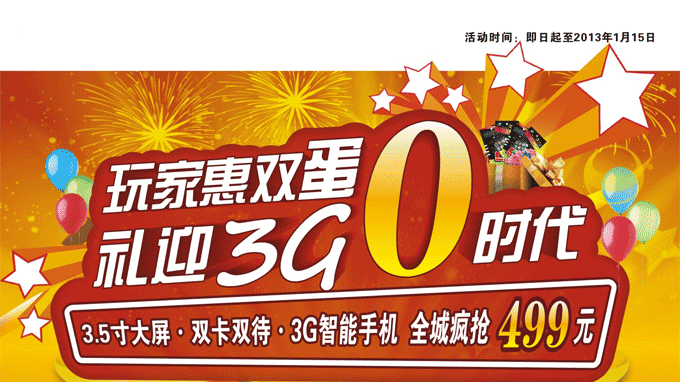 ——3.5寸大屏、双卡双待3G智能手机全城热抢499元,再送4G内存卡