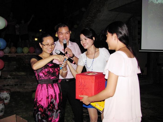 活动现场,全体同仁还为小马哥(马英)、艳姐(孙艳)、富哥(朴道富)过了一个集体生日,他们都是9月份的寿星,员工们为三位寿星送上了鲜花和蛋糕,并开展了一次“沾生日喜气”的抽奖,抽完一轮,再来一轮,受到观众的一致好评。