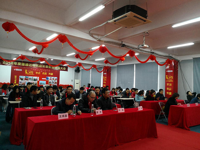 2017年年度评优颁奖表彰大会于1月30日在捷通达电讯火炼树会议室盛大举行,在此盛会上,不仅有众多高层领导及重要业务部门莅临,更有公司总经理参与此会,现场气氛人声鼎沸,欢声笑语,热闹非凡。