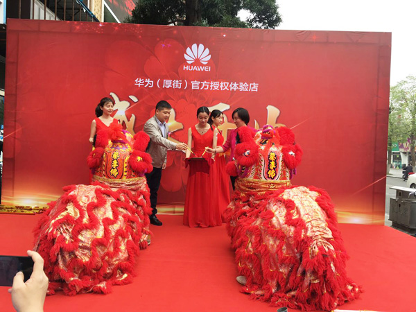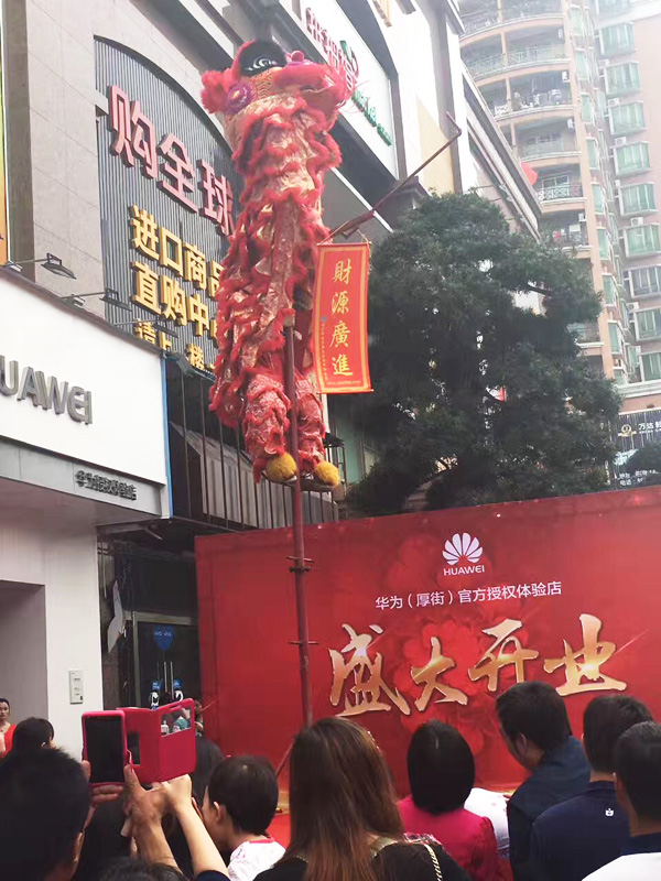 醒狮点睛结束后,精彩的舞狮表演庆开业。欢呼雀跃的狮子舞出了开业的喜庆,更舞出了捷通达电讯厚街华为授权体验店蒸蒸日上的美好愿景。