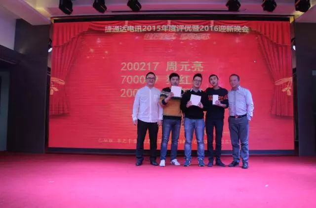 欢快而愉悦,精彩而多样的节目表演结束后,终于到了振奋人心的时刻!2016年终极抽奖节目正式开始啦!!!中奖几率多多的“捷足先登”、现金奖励高达6666元的“事在人为”,一个个寓意十足的抽奖名次、一位位中奖后喜悦的捷通达同事们,让整个年会活动欢呼声持续不断。一个个大奖不断的刺激着各位同仁,中奖的同事笑的合不拢嘴,没中奖的同事为中奖者送上最真诚的掌声与喝彩!