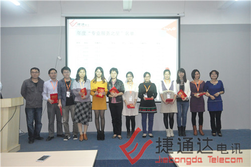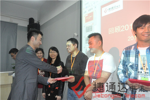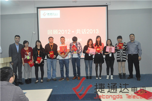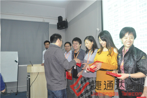 2月4日,捷捷通达“回顾2012,共话2013”在东莞举行,来自职能部队的35位“专业服务之星”上台领奖,总经理甘浩川先生随后作了总结发言。