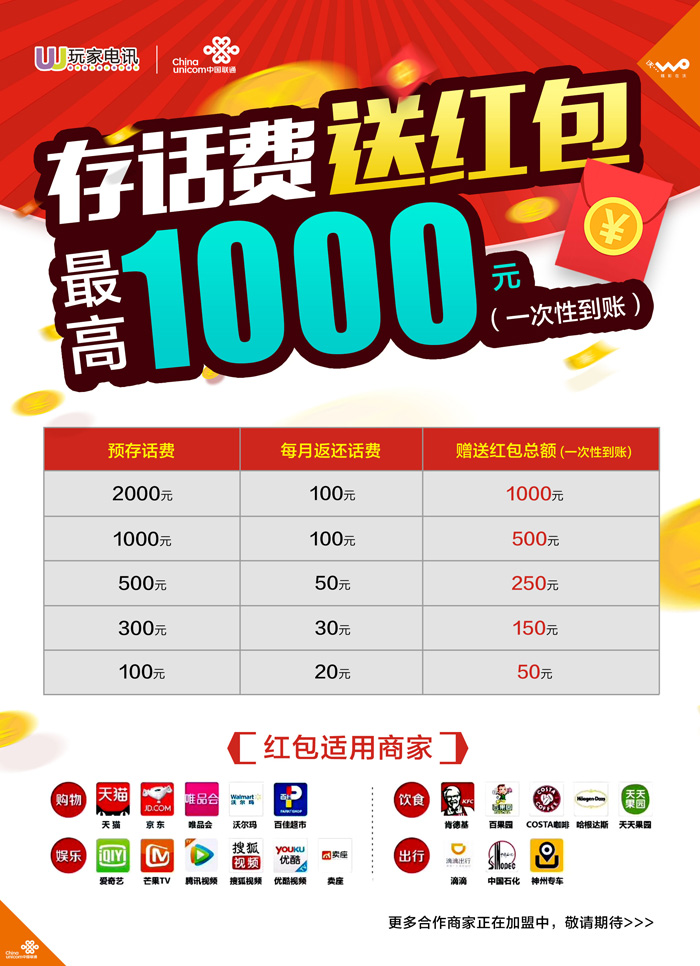 此文关键字:预存,话费,送,红包,最高,1000元,一次性,到,账,