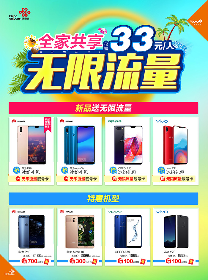 全家共享、全国无限流量、每月低至33元/人