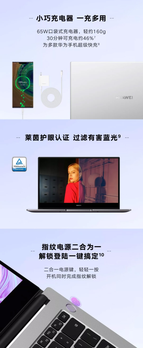 新款HUAWEI MateBook D搭配65W2便携适配器