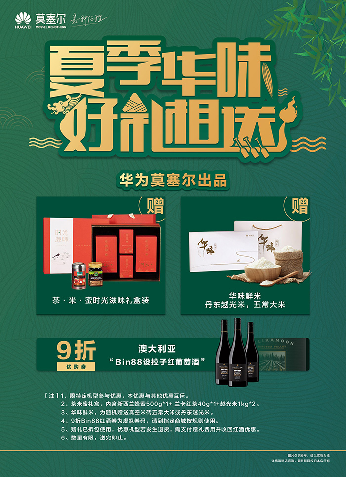 【夏季华味】购手机赠送华为莫塞尔特供礼盒