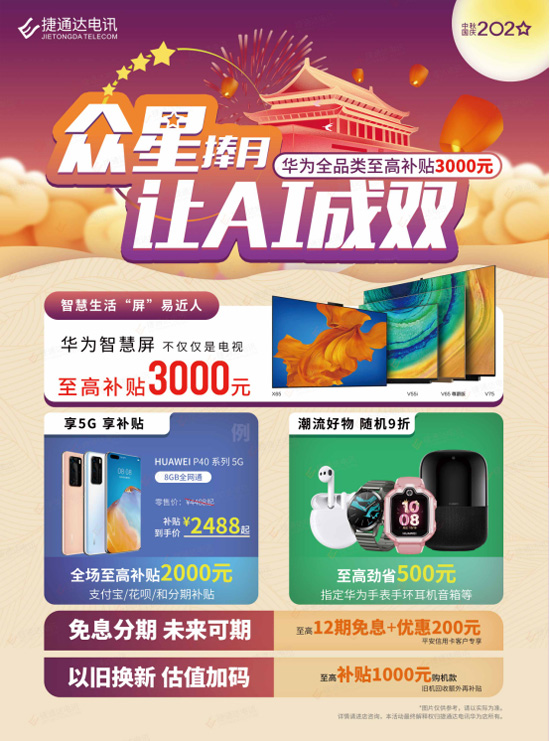 此文关键字:国庆,特惠,众星捧月,让,成双,华为,全,品类,