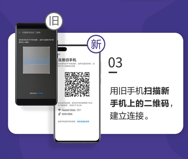 3.用旧手机扫描新手机上的二维码,建立连接。
