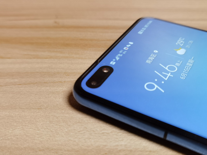 前置的双开孔设计是功能性与美学之间均衡的结果,在开孔中加入了3200万像素广角摄像头和红外摄像头,其中红外摄像头除了承担拍照辅助责任以外,还负责红外人脸解锁、姿态感应等功能。隔空操作也在这款小旗舰得到实现,只要摆好姿势,按照操作提醒摆动作,翻看小说章节、图片等都不需要担心手上邋遢。