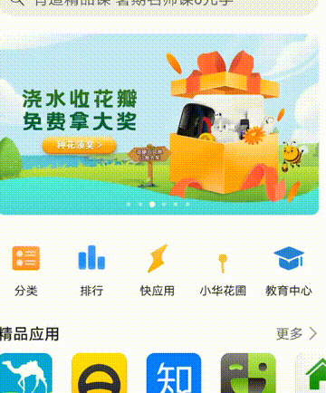 不知道你有没有注意这个小细节,不区分新版本和旧版本的应用。比如华为应用市场和快应用中心,打开后上面滚动的广告栏,拖动它你会发现文字和一些小图片也在动态的移动。向左向右移动时,文字和一些的图片的出现也是动态的,具体请看图。