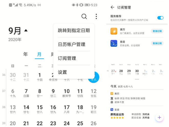 日历这个软件,我想作为大部分人每天都会打开的一大应用,早已看惯了几年如一辙的界面。如今,新版本的日历将会引入更多功能。新版本的日历在界面上新增了订阅管理。你可以在订阅管理中订阅黄历以及星座运势,这样你的日历同是也是一份黄历,还是星座运势表~